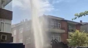 Ataşehir’de su borusu patladı, tazyikli su metrelerce havaya fışkırdı